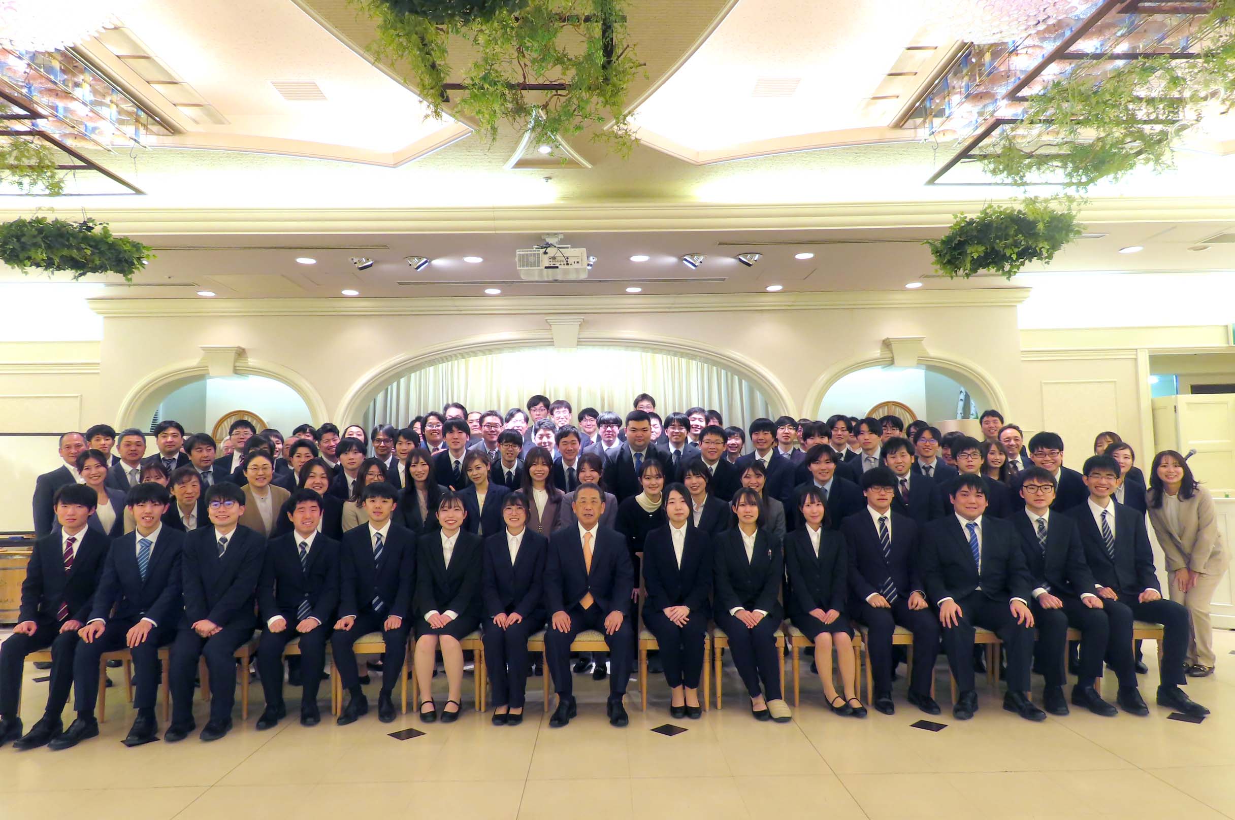 毎年、仙台市内のホテルで行われる入社式では、社長を始め先輩社員からお祝いの言葉を頂き、これから始まる社会人生活への決意を